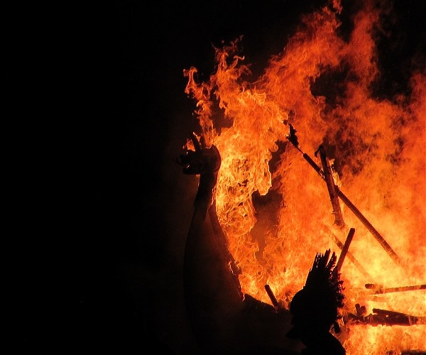 Up Helly Aa is an annual festival that celebrates the Viking heritage of the Shetland Islands and is marked by a series of parades and rituals that pay tribute to the region’s past. Highlights include the Guizer Jarl’s Squad, a group of men who dress up as Vikings and march through the streets carrying torches, and the Burning of the Galley, a ritual in which a replica Viking longship is set ablaze in a ceremony that signifies the end of the festival.