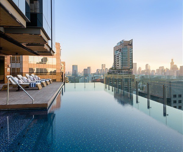 Located on the 24th floor, the infinity-edge swimming pool at Hotel Indigo Bangkok Wireless Road offers unrivaled views of Bangkok’s city skyline and provides the perfect retreat into a sanctuary away from the bustling city below. The pool deck is equipped with sun loungers, large lounge sofas, and a rooftop bar – where you can choose a variety of boozy beverages and delectable finger foods (inspired by Thai street food).