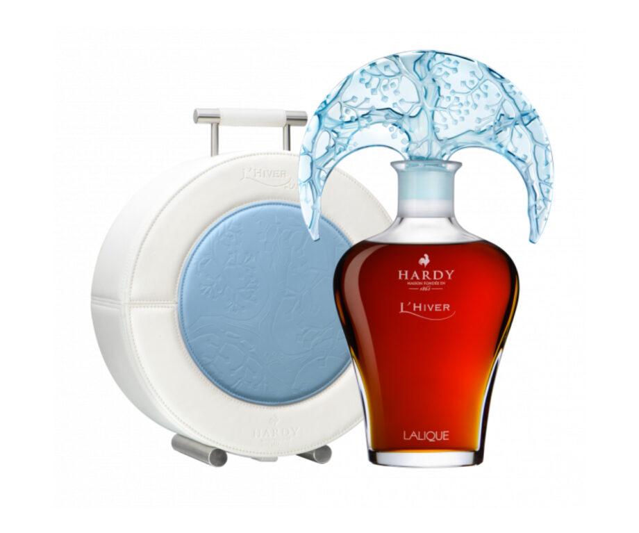 Pursuing its fruitful collaboration with Maison Lalique, Hardy has unveiled its final creation in the Four Seasons collection: L’Hiver carafe. The carafe is topped with an ice blue crystal tiara adorned with dormant vines. The shape of the carafes, sculpted in Lalique crystal, is a nod to the world of perfume. The feminine silhouette and the spectacular sculpted fan-like stoppers are reminiscent of some of the perfume bottles created by René Lalique in the early 20th century. The motif and color of each stopper reflects the evolution of the vine during each season.