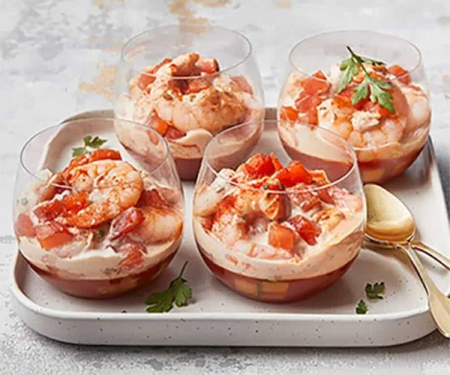 Juicy prawns with a gin-infused Marie Rose sauce, topped with silky smoked salmon. A twist on the classic, from this Waitrose own-label specialty.