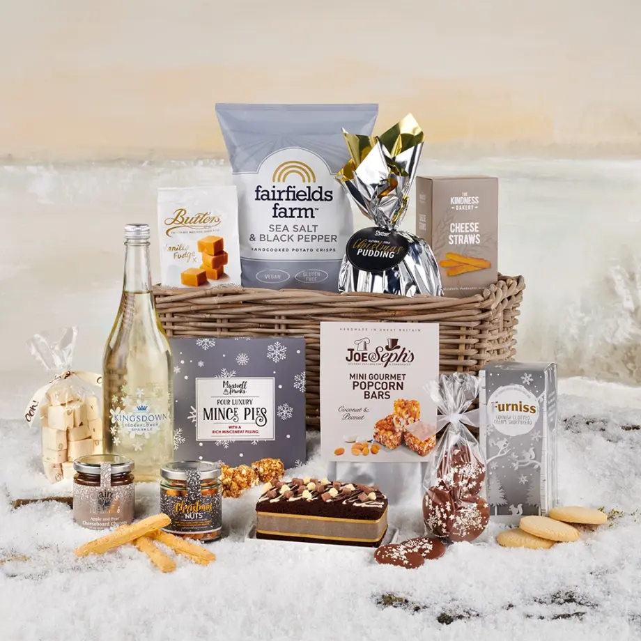 This luxury selection of festive nibbles and treats has been thoughtfully curated by Virginia Hayward to ensure a memorable celebration, where all food and drink products are alcohol free. It includes traditional British favourites, such as mince pies and Christmas pudding, and is all beautifully presented in a Kubu basket, which can be used for many years to come.