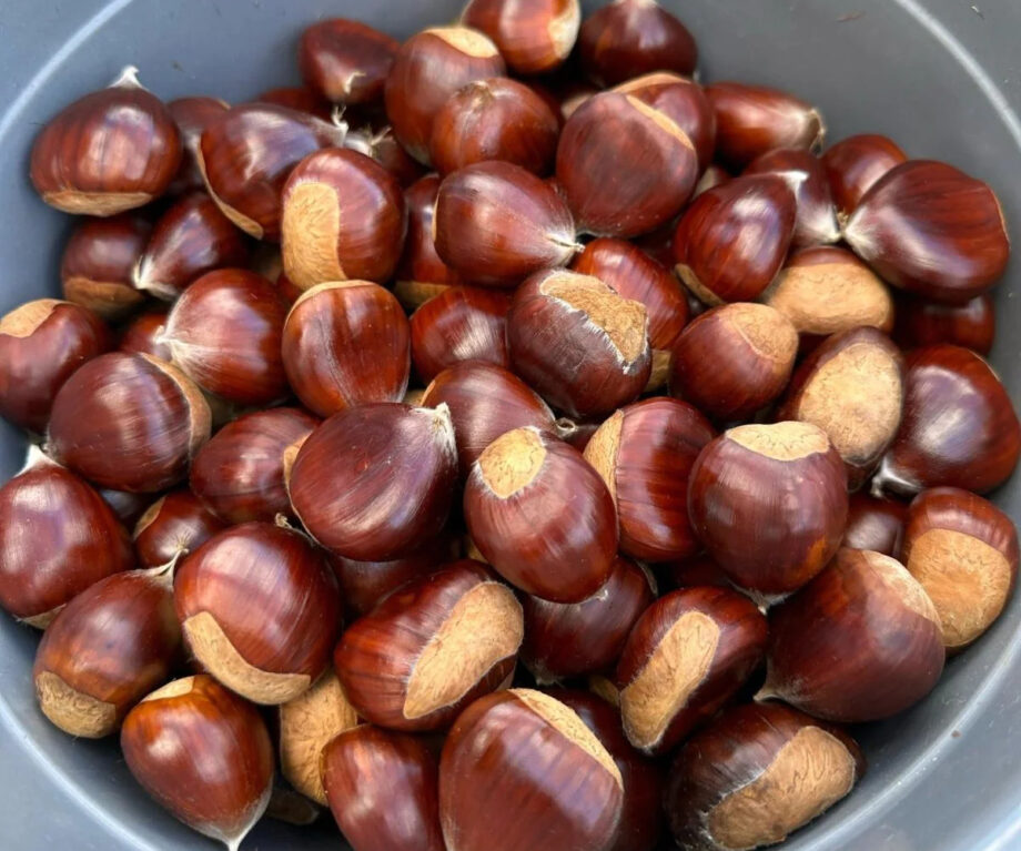 Native to Japan and Korea, Japanese Tokusen chestnuts stand out with their impressive size, often larger than their Western counterparts. Boiled in saltwater rather than roasted, these chestnuts offer a tender and fleshy texture with a delightful blend of sweetness and nuttiness.
