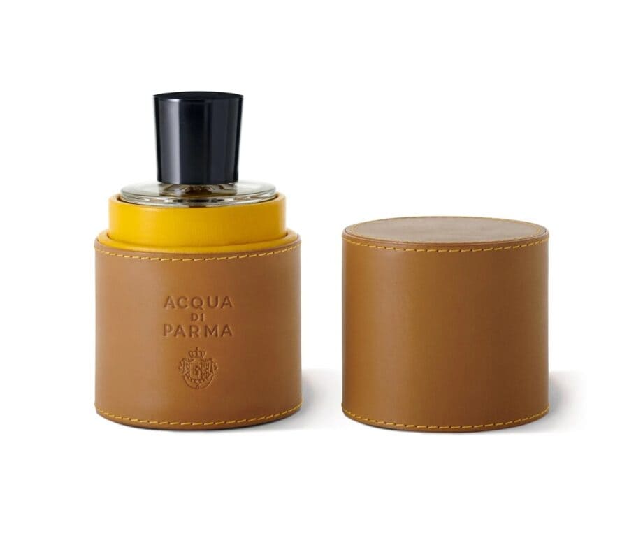Crafted with precision, this Leather Travel Case is a luxurious companion to elevate your fragrance experience, whether at home or on-the-go. The finest natural calfskin leather, in a warm natural tan hue, is complemented by the signature Acqua di Parma yellow that graces the interior, offering a bold yet sophisticated contrast. Every stitch, carefully finished by hand, borders the edge of the holder, adding an element of texture and depth. The Acqua di Parma emblem is hot-stamped for the perfect finish. The Leather Holder is designed for our 100ml Art Deco fragrance bottles.