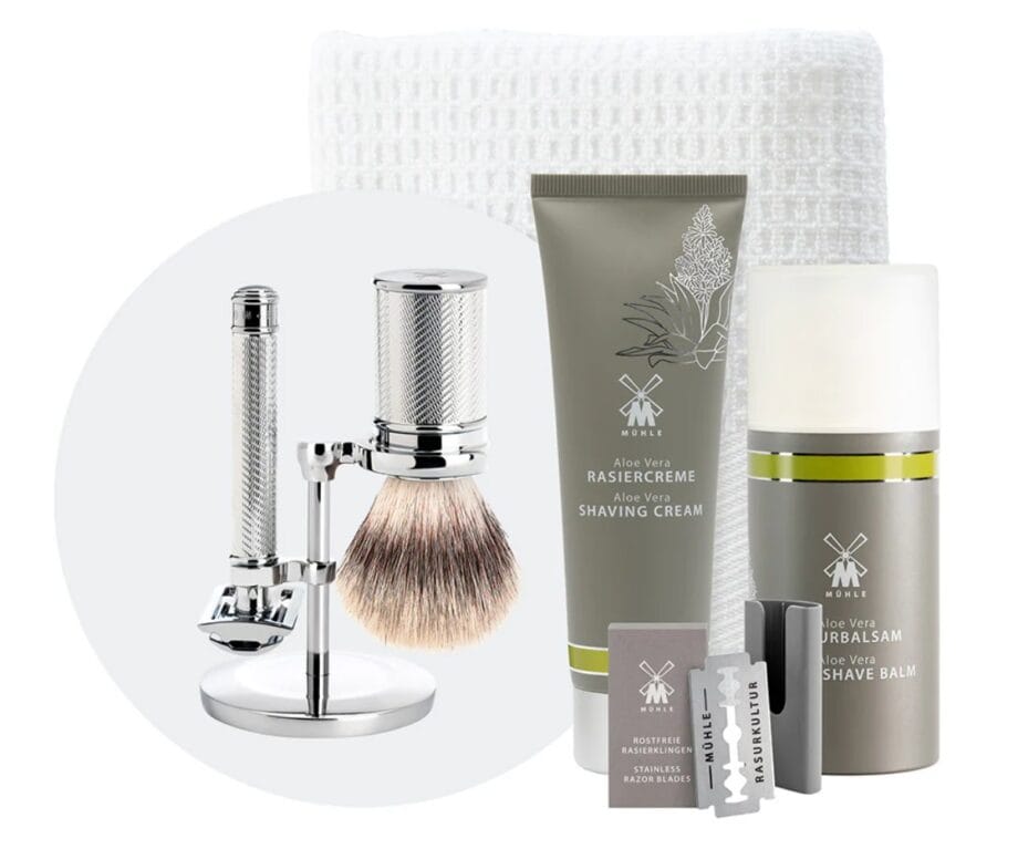 Elevate your shaving ritual, with a Traditional Shaving Set. This marvel of precision, ergonomics and beauty includes gentle yet thorough closed comb Traditional safety razor, vegan Silvertip Fibre shaving brush (with replaceable brush head) and stand to ensure pride of place for your handsome shaving set.