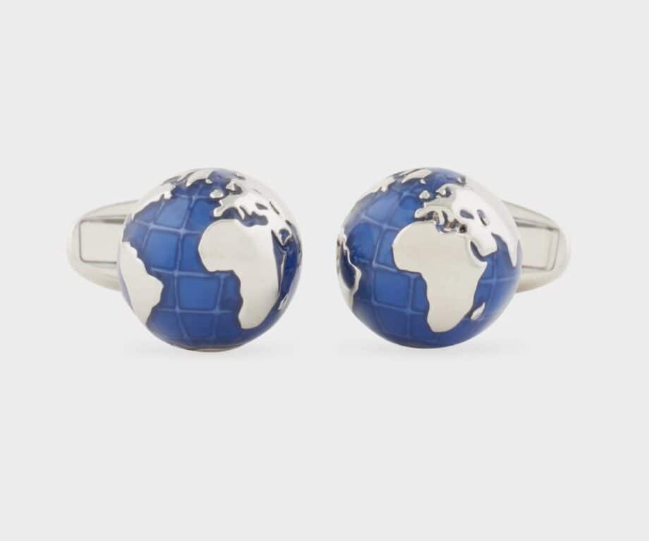 These men’s cufflinks feature a navy globe – perfect for the budding adventurer! They have a polished silver finish, Paul Smith signature embossed T-bar fastenings, and are presented in a black gift-box.