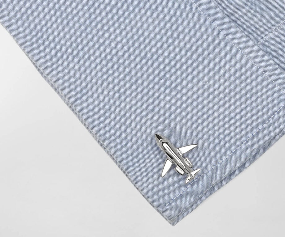 Inspired by the classic symbol of wealth and achievement, these Sterling Private Jet Cufflinks are the perfect accessory for a pilot or budding traveler. They are designed to replicate a 3D Gulfstream private jet. The expert craftsmanship of these Sterling silver cufflinks ensures long-lasting durability and a classic look that is sure to never go out of style. Available from Cufflinks.com.