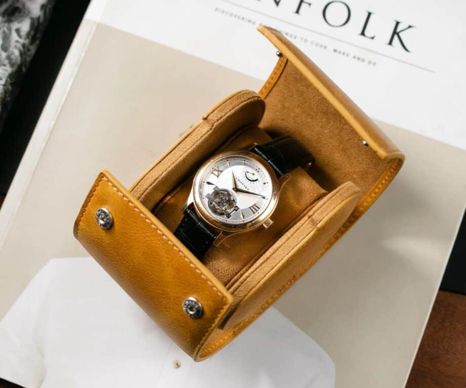Roarcraft‘s sturdy and elegant leather watch box is the ultimate luxury solution for watch storage and protection, whether you’re at home or on the go. Crafted from premium full-grain calfskin, this watch box is designed and tested to prevent damage to your watch while traveling. The inner lining is made from soft microfiber to protect your watch from scratches, while the snap cushions keep your watch in place and are simple to attach to the slot, providing ultimate peace of mind.
