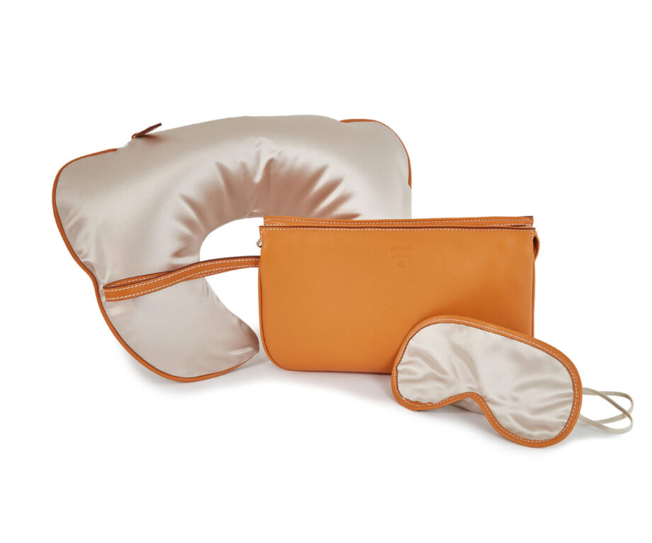 An on-the-go solution for those who seek style and comfort while travelling. Presented in a buttery-soft Nappa calf leather case, the set includes a neck pillow and an eye mask designed with subtle luxurious details that embody the discreet Acqua di Parma style.