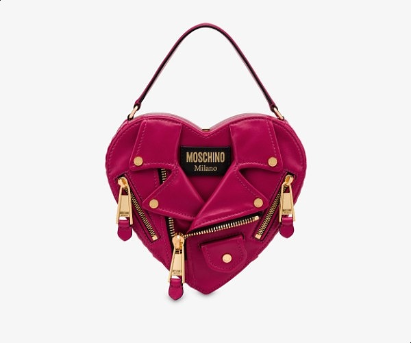 For the ultimate Valentine’s gift, how about this heart-shaped handbag from Moschino with rigid nappa leather-covered shell and typical biker bag details. It has small zipped pockets on the front, biker details on the front and handle to carry it by hand, as well as an adjustable and removable leather shoulder strap for crossbody use.