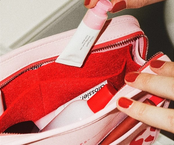 The Beauty Bag from Glossier fits the whole shebang. It’s the ultimate home for her routine. Tall enough to fit all of the essentials (standing up!), but still slip easily into her tote; made out of coated cotton, so she won’t worry about splashing water on it; and with enough pockets to actually help her stay organized. The red interior pouch is removable, with snap buttons to secure it in place, and has four smaller pockets on the sides—so no more digging around!