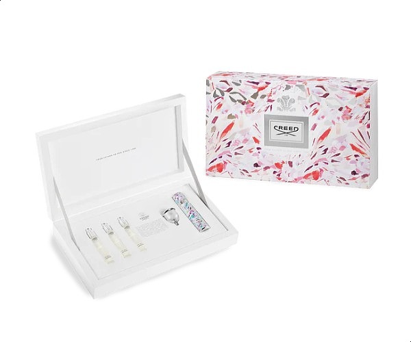 The House of Creed presents a trio of luxurious scents for her (Floralie, Love In White and Acqua Fiorentina) in a limited-edition Radiant Travel Atomizer Coffret. To enjoy these scents while traveling, the Coffret includes three 10ml glass vials pre-filled and an exclusive Silver Leather Pocket Atomizer adorned with abstract artist Taelor Fisher’s Floralie-inspired pattern. The collection is presented in a luxurious Creed box with a custom Floralie design, a statement of the quality and personal touch at The House of Creed.