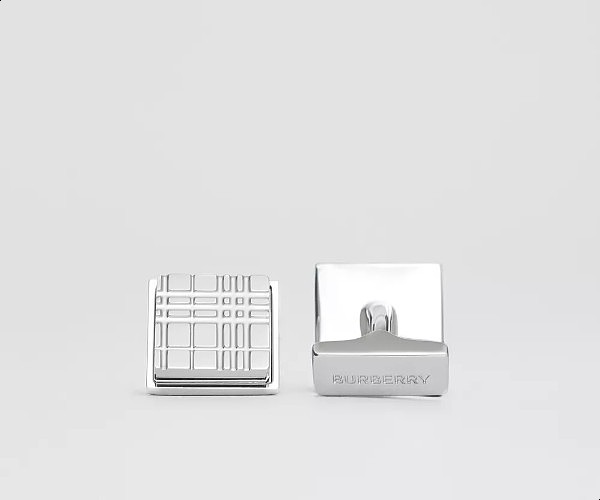 Check engraved palladium-plated square cufflinks from Burberry