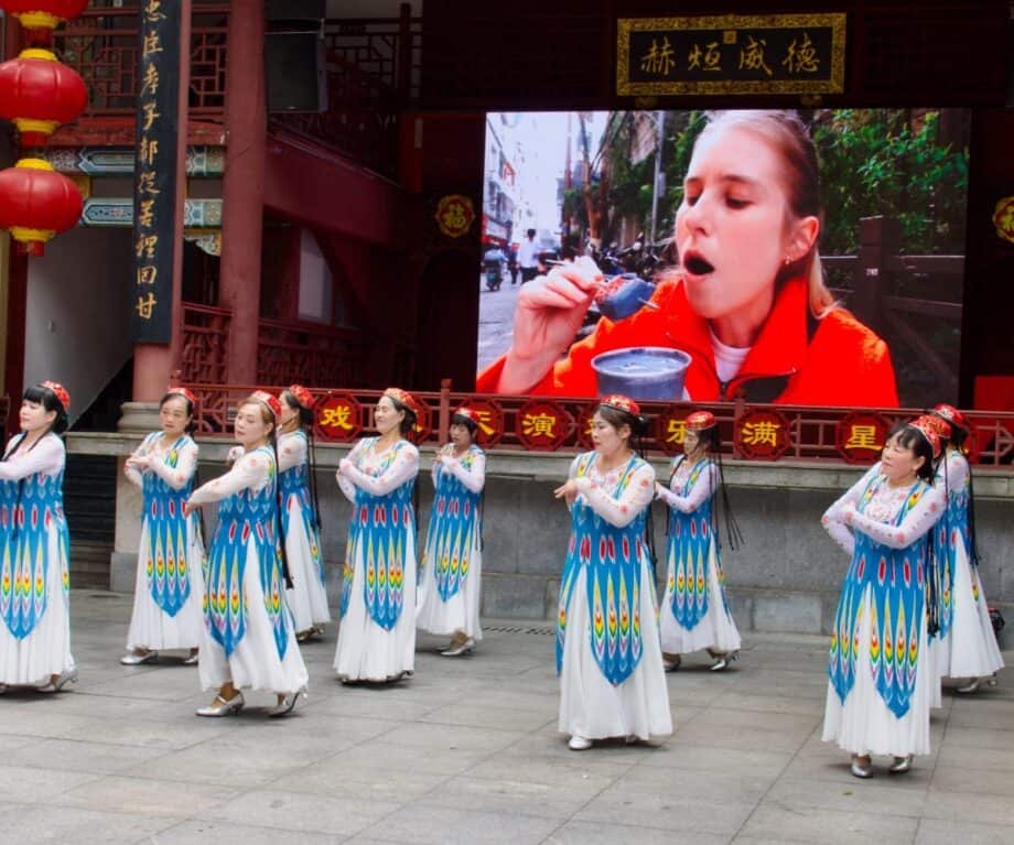 Pozi Street is a fusion of traditional China and trendy China. Walking along this street visitors can pass under a massive LED screen leading to a modern shopping mall in one direction. Or stroll pass typical Chinese architecture and into the busy courtyard in front of the ancient Fire Temple now occupied by the Fire Temple Restaurant. Dance groups entertain with cultural displays in this area.