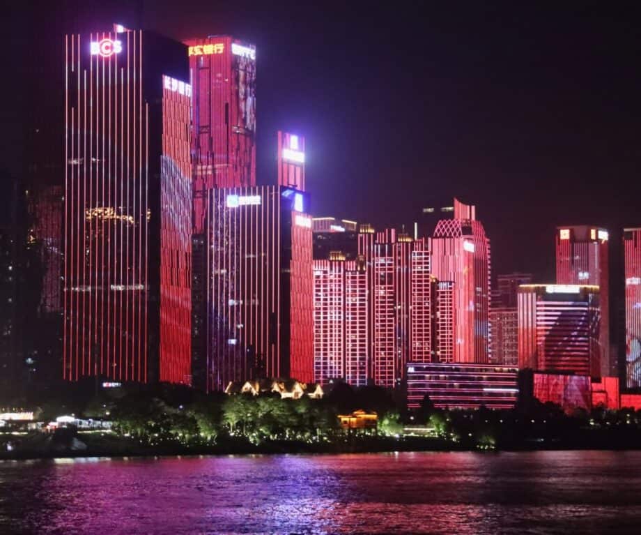 Changsha is the capital of the Hunan province in China sprawling along the banks of the Xiang River, sometimes referred to as the Xiangjiang River. This modern city has a skyline spiked with skyscraping buildings and hotels including the Meixi Lake Hotel that boasts fifty floors. At night the buildings along the river bank light up. Bright, constantly changing colours flow across these steeples of windows. Illuminated boats and the dark shadows of working boats travel up and down the watery expanse passing through the reflections of the multi-hued buildings beside them.