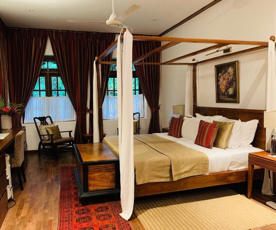It was not just cool temperatures and abundant rain that gave the region the nickname of Little England. The planters imported afternoon tea, G & Ts and marmite to overcome home sickness. With Sri Lanka’s President as a previous guest, there is a restful elegance to the décor.