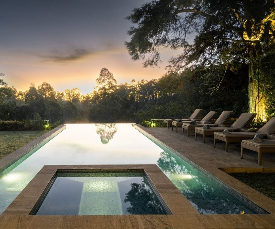 Opt for a room in the original bungalow, close to the glass pavilion restaurant and swimming pool. Or for one of the recently built suites with views across a valley cloaked in tea bushes.