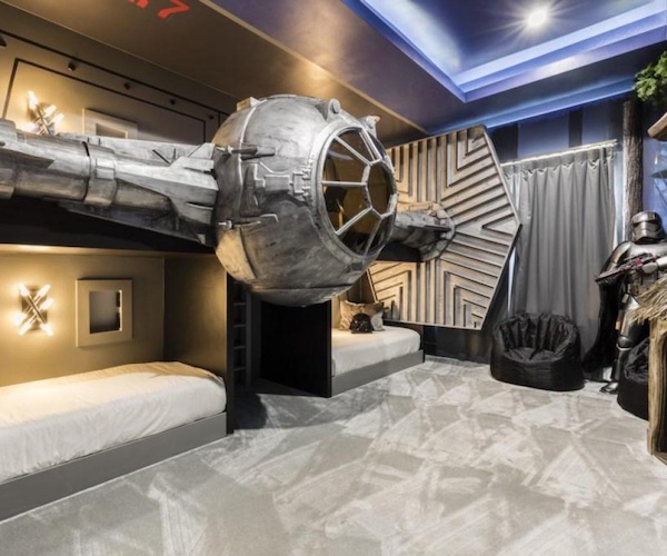 This is an absolute masterpiece and perfect for larger family groups. There are 12 bathrooms, three of which are specifically designed with younger guests in mind. Overall the villa can accommodate 26 people, and the bedrooms are so fantastic that we won’t tell if one of the adults wants to spend a night in the themed kid’s rooms! There is a princess-themed kids’ room with four bunkbeds, an Ocean-themed area with four bunkbeds, a slide and plenty of other fun and an out of this world sci-fi themed room with a tie fighter and a definite Skywalker-esque vibe.