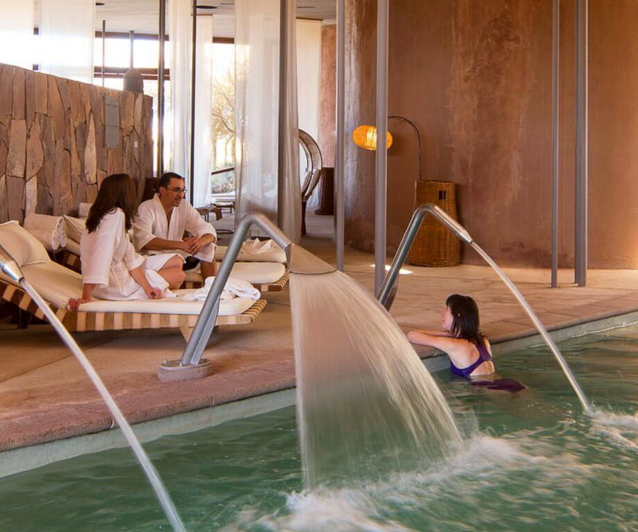 The spa’s design is light and airy, with huge windows, natural stone walls and a bamboo canopy that bring you closer to the pristine environment. Enjoy a dip in the infinity pool, surrounded by the hotel gardens, before taking a rest on one of the spa’s wicker sun loungers and absorbing the Atacama views. This space, created to mirror the essence of the desert, is waiting to restore your mind, body and soul. At the same time, the center’s indoor space is just as enticing, complete with a heated pool with water jets and bubble beds to leave feeling entirely energized.