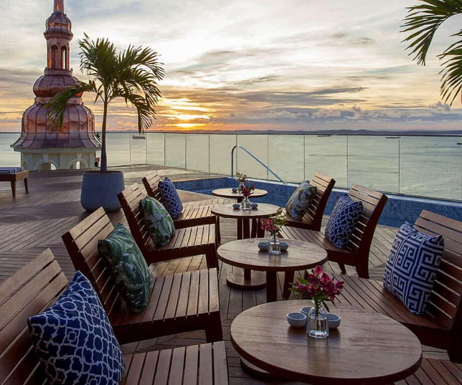 The city itself – a UNESCO-declared World Heritage site – is known for its colonial character marked by colorful buildings and cobblestone streets. Blending into this colonial charm, most of Salvador’s luxury hotels occupy historic buildings and all these accommodations feature modern amenities. In or around the historic Pelourinho neighborhood are upscale properties like the Fera Hotel (pictured) and Hotel Casa do Amarelindoare. These are retreats where guests can enjoy stunning views of this neighborhood and the bay from their rooftop terraces or hotel rooms. All this makes first-class Salvador hotels perfect bases for exploring the city’s vibrant culture and attractions.