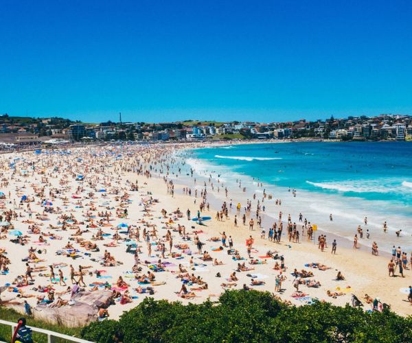 Bondi Beach is one of the most iconic beaches in Australia, located in the suburb of Bondi in Sydney. The beach is famous for its golden sand, clear waters, and world-class surfing waves. Bondi Beach attracts millions of visitors every year, including surfers, swimmers, sunbathers, and beachgoers of all kinds.