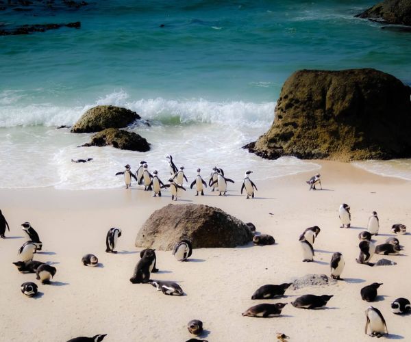 Located in Simon’s Town, just outside of Cape Town, Boulders Beach is a unique and picturesque beach that is home to a colony of endangered African penguins. These adorable creatures waddle along the beach, swim in the crystal-clear waters, and lounge on the warm rocks, providing visitors with a once-in-a-lifetime wildlife experience.