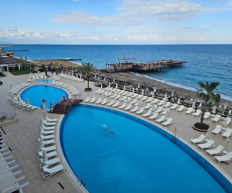 We stayed at Corendon Playa Kemer Hotel, an all-inclusive five-star resort about 40 minutes’ drive south along the coast from Antalya.
