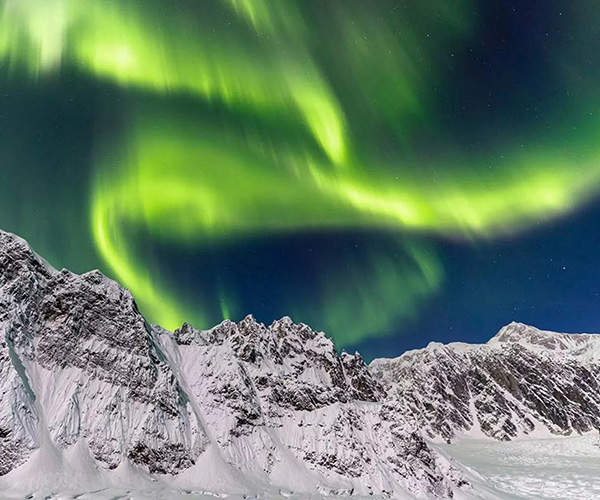 Rugged Alaska is sparsely populated and therefore has little light pollution, making the far north, the Arctic, a perfect location to witness the Aurora Borealis. Fairbanks, located about 240 kilometers south of the Arctic Circle and the pristine Denali National Park offer the best chance of seeing the Northern Lights when the sky is clear.