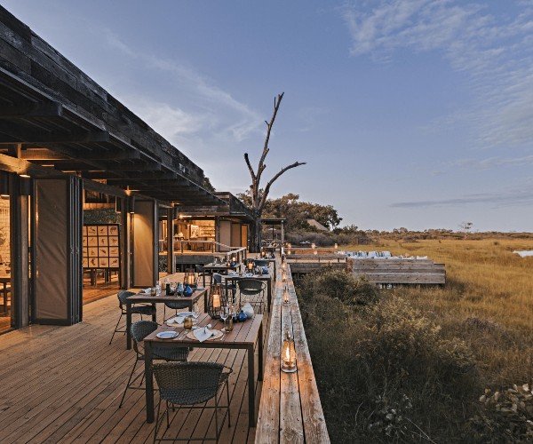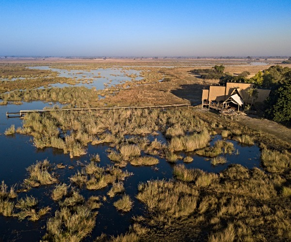 Vumbura Plains Camp is located in the far northern reaches of the Okavango Delta. The annually flooded grasslands of the Okavango Delta surrounding Vumbura Plains, locally referred to as ‘melapo,’ offer good seasonal wildlife viewing, including elephant, giraffe and buffalo. Hippo and crocodile are common in the waterways, and there are several resident prides of lions and numerous other predators. Birding is exceptional all year round.