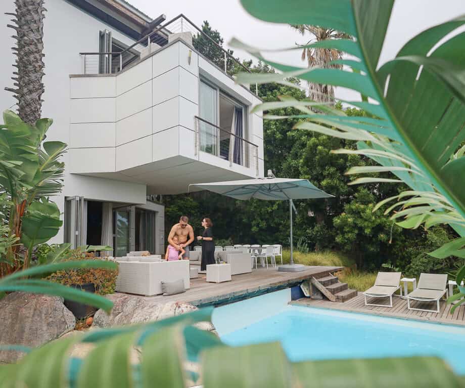 A few streets up in the prestigious Camps Bay, another new favourite is the extraordinary Lobster Villa, undoubtedly one of Cape Town’s most uniquely designed and perfectly located villas. This family-friendly villa features six bedrooms, three lounges, and a bar, all spanning four levels, ultimately cascading into the outdoor space complete with a deck designed for entertaining, a garden, and a 25m swimming pool!