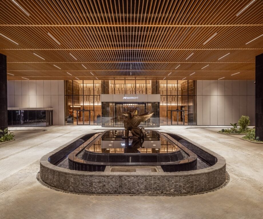 The hotel features 315 sophisticated guestrooms, five internationally-inspired dining destinations, a luxury Spa by JW, swimming pool, fitness center, and eight exceptional event spaces for gatherings and celebrations. An additional 51 spacious serviced apartments and a sky bar & lounge are slated to open later in the year.