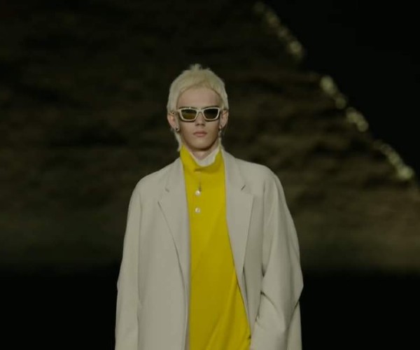Before the pyramids and runway were illuminated, the 25-minute fashion show began shortly after 6 o’clock in complete darkness and hush. The models walked in front of the audience as they paraded the collection, first appearing in the distance like shadows.