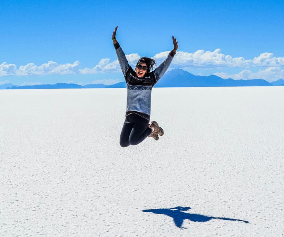 The Uyuni Salt Flats (“Salar de Uyuni”) is a gigantic, stark, and mysterious destination of geographic extremes. Formed thousands of years ago as the Andes mountain range was forced upwards from the ocean to trap a massive amount of salt water, it’s impossible to feel any personal significance when faced with the enormity of this barren saline landscape.