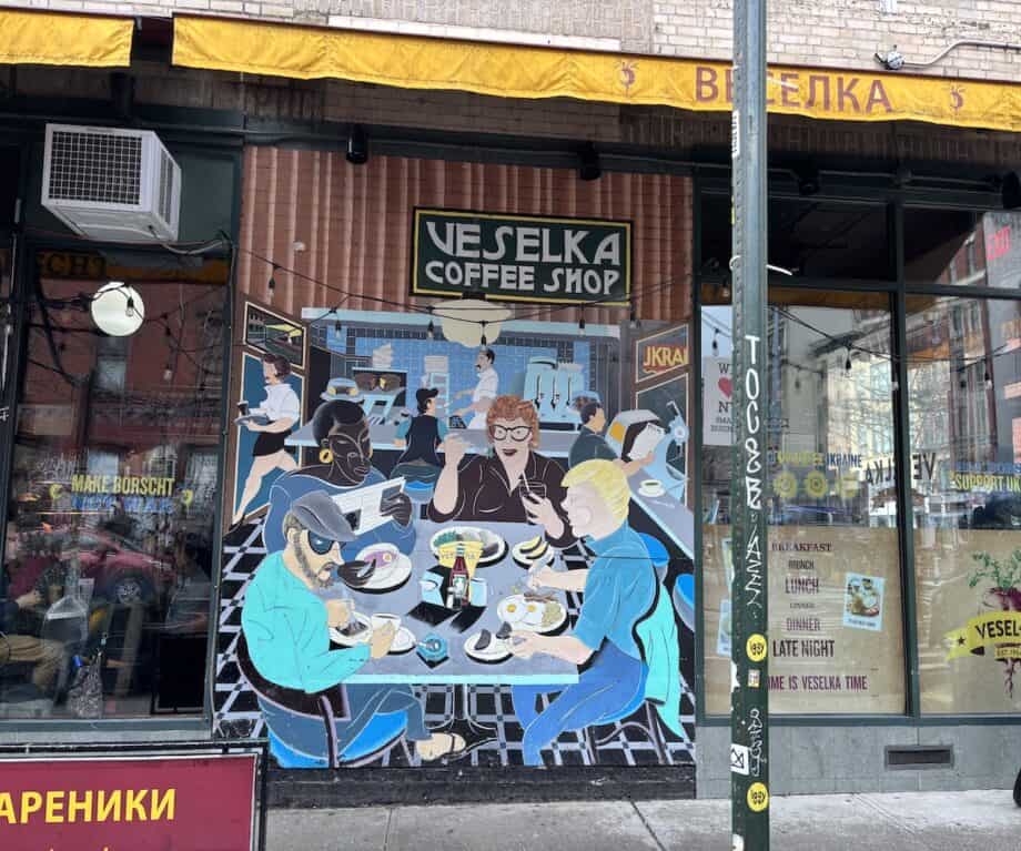 My guide wouldn’t be complete without mentioning the Ukrainian coffee shop standby Veselka. Since 1954 Veselka has been serving up pierogies (crispy fried or boiled chewy), pancakes, and more to club kids and grannies alike. It’s an East Village institution. Support Ukrainian relief efforts by ordering the Stand With Ukraine Bowl – two potato, two braised beef, and two sauerkraut-mushroom pierogi, topped with caramelized onion, grilled kielbasa, and a slab of bacon.