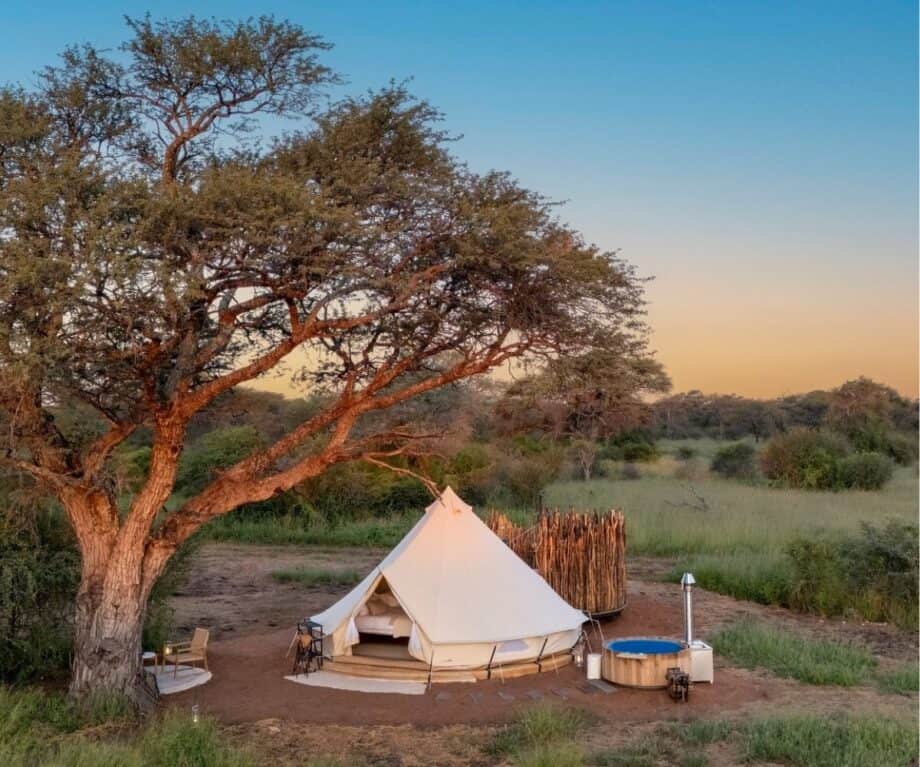 Onguma’s Trails Camp, located on the eastern border of Etosha National Park, offers the rare opportunity to walk through big game country in Namibia. Trails run during Namibia’s winter months (April to September) when the weather is cooler and the bush is less dense –  and can be booked for either 2 or 3 nights, staying in a  beautiful glamp camp.