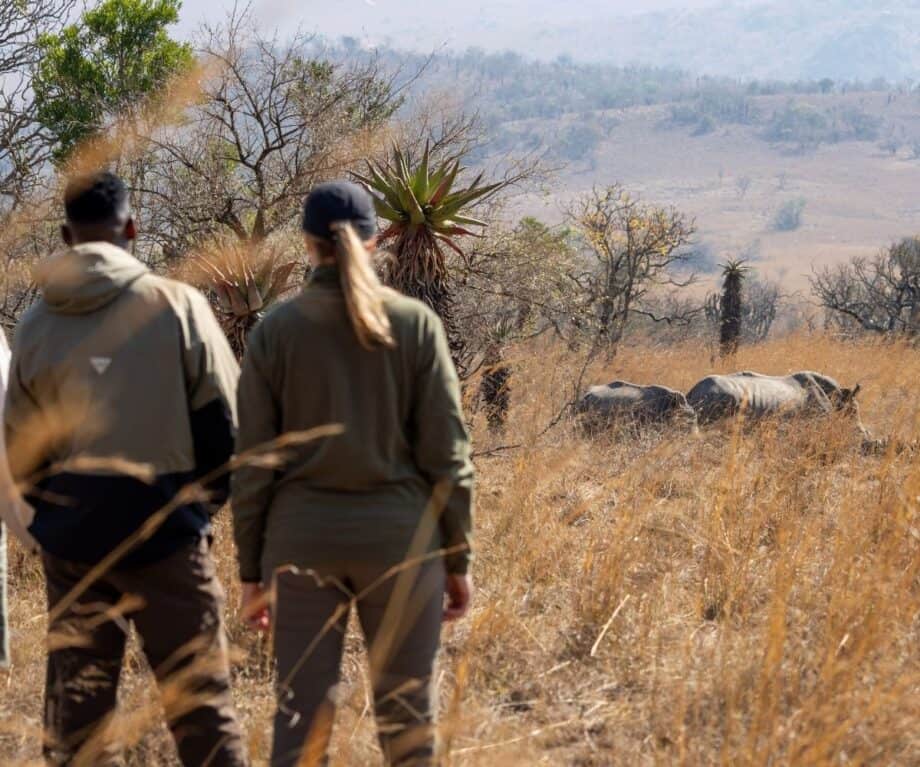Babanango Game Reserve in KwaZulu-Natal’s pristine Zululand hills offers walking safaris with exceptional biodiversity as you navigate the rugged hills, rolling grasslands and serene valleys along the  White Umfolozi River. Walks highlight history, geology, and “Big Five” game tracking in a l andscape once traversed by Zulu kings. The reserve is a groundbreaking rewilding success, where tracks might reveal rhino, buffalo, giraffe. Along the walk, the guides will teach you essential bushcraft survival skills, such as identifying different animal tracks, spotting camouflaged creatures, and recognising edible or medicinal plants. You will also learn how to interpret animal behaviour and the intricate balance of the ecosystem.