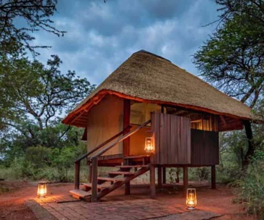 After a day of exploration, the adventure continues with an overnight stay in one of Babanango’s base camps with “back-to-basics” canvas tents which are rustic yet comfortable. Equipped with some essential facilities, sleeping bags, and lantern lighting, they offer an authentic connection to the natural surroundings. You’ll fall asleep to the sounds of the bush and awake with the African sunrise. Guests can choose from a variety of walking safari packages ranging from two to five nights, combining the sleep outs with their various luxury lodges such as Madwaleni River Lodge or Zulu Rock Lodge.