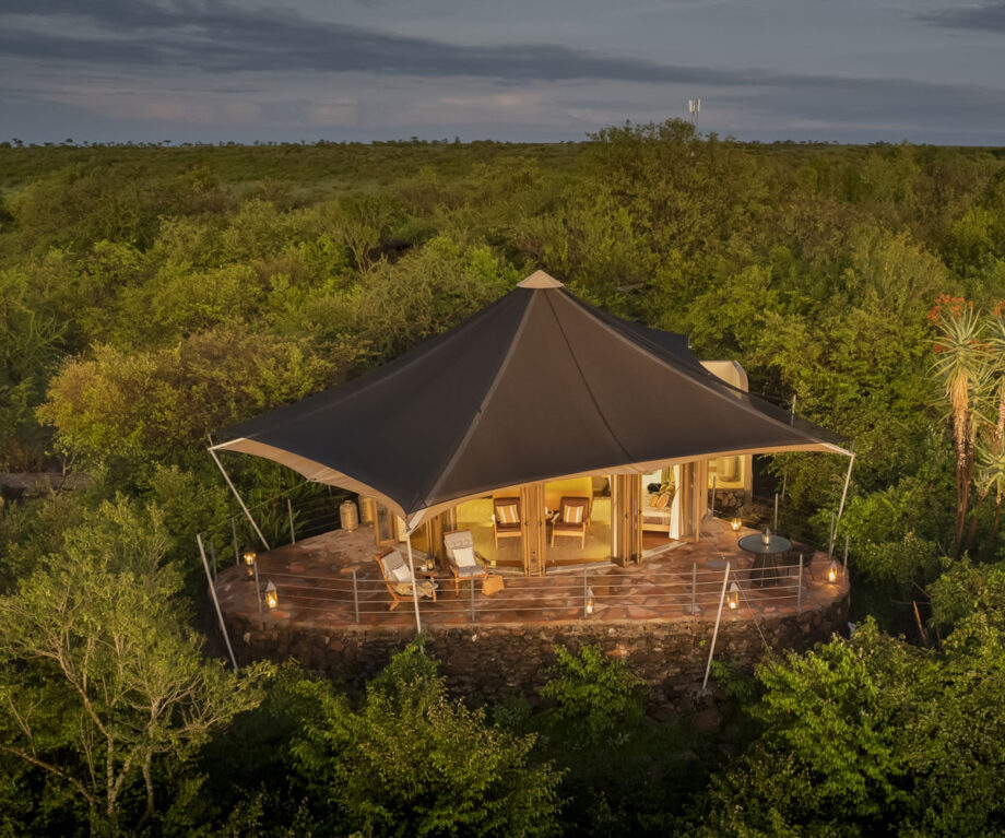 Nyika Mara is a small, intimate camp located in the Naboisho Conservancy. Nyika means ‘large or great plains’ in the Mara language and the camp is perfectly positioned looking over wide sweeping plains. There are just four tented suites, sitting under umbrella-thorn trees, ensuring an exclusive and private experience for the guests evocative of a treehouse under canvas.