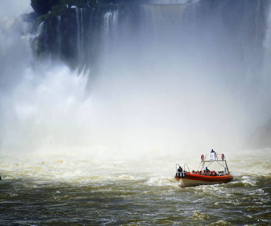 The tour will continue with a 350-foot descent to board the semi-rigid boat that will take you three miles along the Iguazu River. On this adrenaline-packed boat ride, you’ll reach the foot of the majestic Devil’s Throat, and even sail behind the falls themselves! As such, you’ll experience this impressive natural icon differently, as the views you’ll get will be unforgettable!