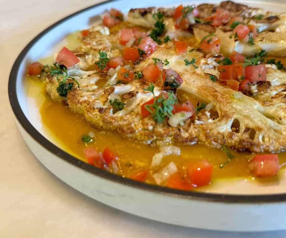 Le Phnom 1929 is the French styled brasserie at Raffles Hotel Le Royal where we enjoyed long and lazy breakfasts during our stay, starting each day with tropical juices, strong coffees and traditional breads, all freshly squeezed, brewed and baked to perfection. The attentive team were happy to create off menu dishes that catered to our dietary requirements meaning that we were very well catered for as vegan guests at Raffles Hotel Le Royal. However, that extra attention was not required at lunch when we were able to enjoy clearly marked vegan options from the menu. These included a vegetable tian with flaxseed dressing, and a simply divine cauliflower steak, served atop a bed of velvety pumpkin mash, with sauce vierge, that combined to deliver a light, flavourful and perfectly plant based dish.