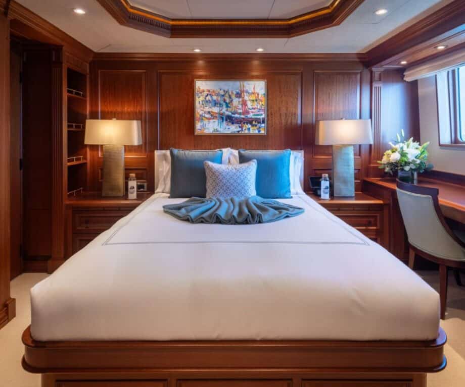 A couple of hours cruise away finds Nantucket Island which despite being only 26 miles from mainland USA, feels a world away. With its abundance of natural beauty and tranquil waters, it will come as no surprise that outdoor activities thrive on Nantucket – whether swimming in the Sound, fishing offshore or paddleboarding along the coast, there is something for everyone. Most charter yachts carry a selection of water toys on board, so you can take your time and try your hand at everything. The crew will anchor in any number of peaceful coves to set up the toys, open the swim platform and start up the tender – which can pull towables and water skis or take guests ashore to explore. After pre-dinner drinks on board, the tender can also escort guests to dinner at one of the amazing seafood restaurants including Cru Oyster Bar, a casually elegant venue serving perfectly shucked oysters and beautiful wines at sunset. For special occasions, try The Galley Beach where you can book the captain’s table or dine directly on the beach – perfect for leisurely family meals. Laid back Millie’s, serves coastal fare and their signature Madaket Mystery cocktail in a casual, beachfront location. The crew will welcome you back on board with a nightcap before you retire to your luxury cabin where the bed will have turned down and blinds drawn to guarantee a good night’s sleep.