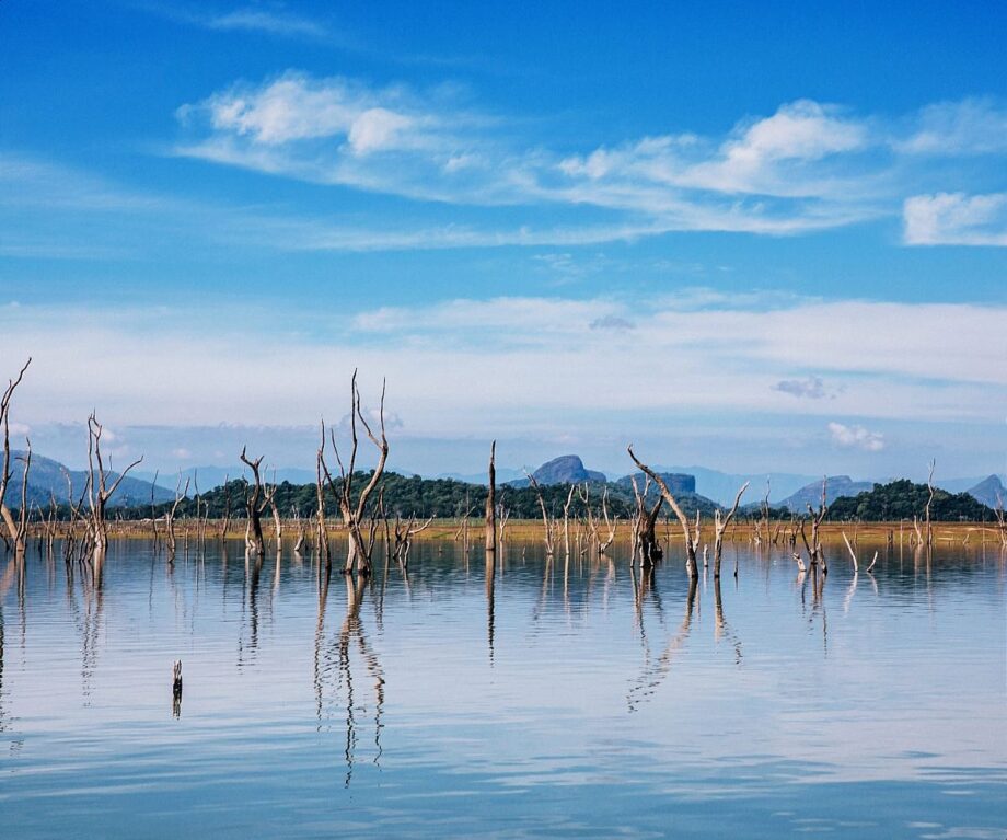 As dawn breaks, a safari jeep departs for Senanayake Samudraya, Sri Lanka’s largest lake, named after the teardrop island’s first president. Back in 1947 he ordered the creation of the lake as part of an irrigation and energy programme.