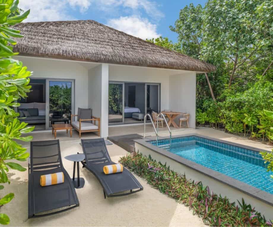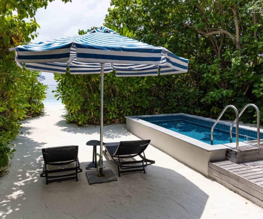 Outside there’s a small pool which is perfect to cool down, but it’s equally great for the kids to have some proper fun without disturbing any of the other guests on the island. And with direct beach access it’s hard to get the kids away from the villa as they have literally an endless playground right in front of them.