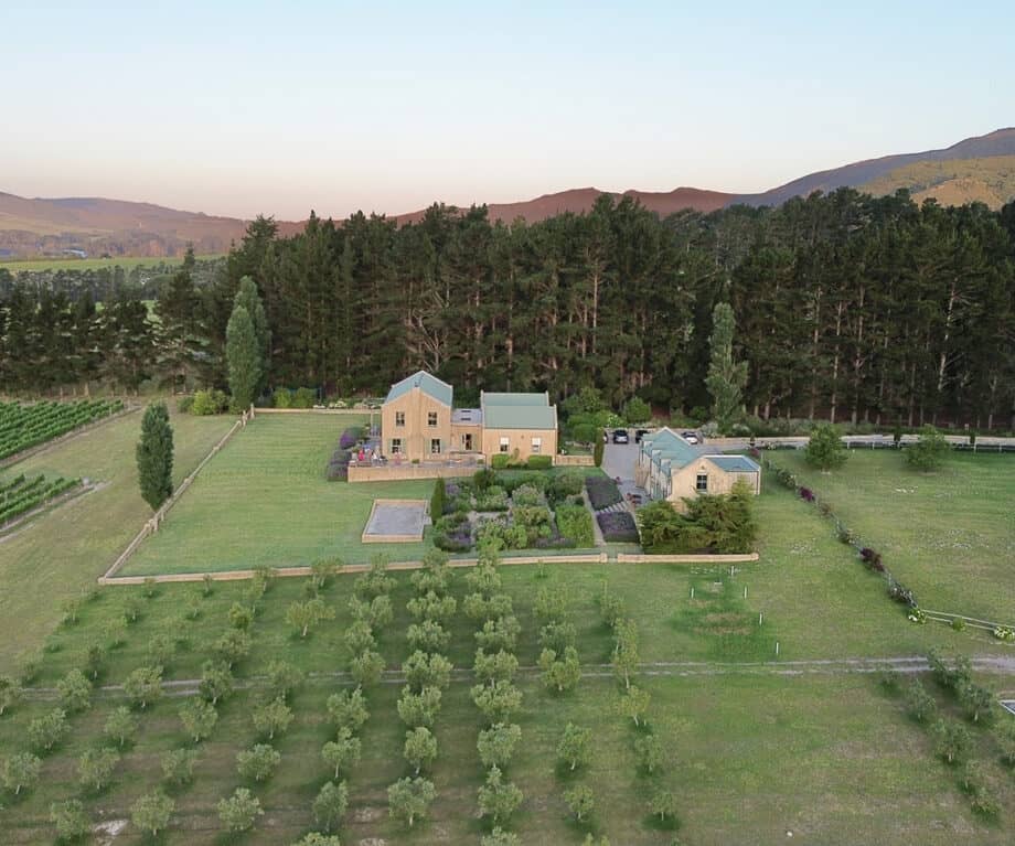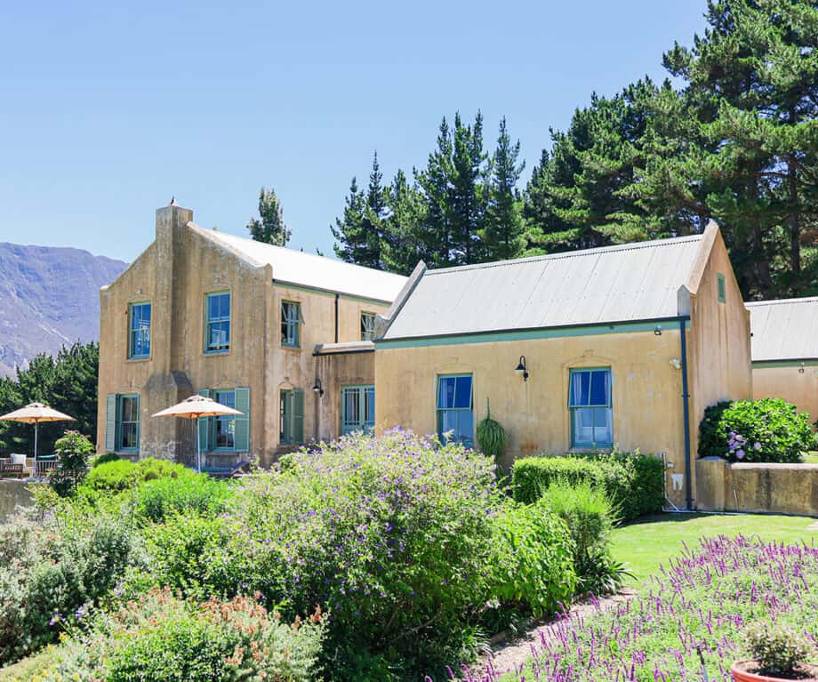 Approaching from Hermanus on the famed Hemel-en-Aarde Road, the discreet little signpost to Moya’s Vineyard entrance belies the majestic scene at the end of the driveway. Sheltered from the winds by established lanes of conifers, the farmstead confidently nestles above the valley floor, claiming its environment with sensible style and considered rural elegance.