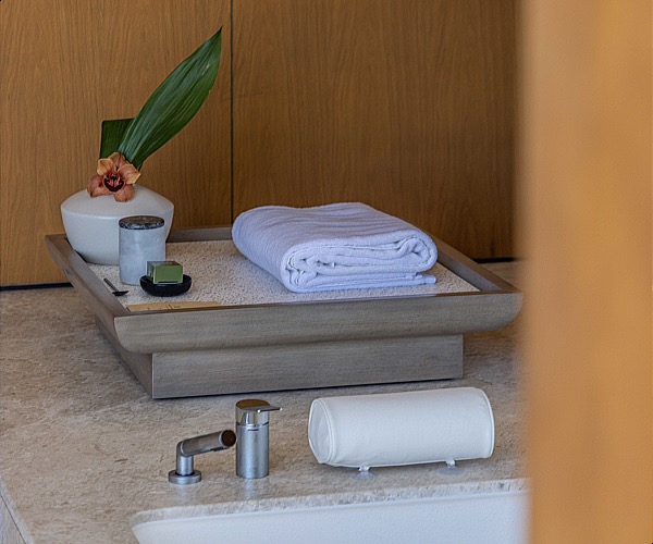 The spa is an architecture masterpiece and you must have been living under a rock if you haven’t seen any picture of the famous round-shaped spa facility yet! Located overwater with a turquoise lagoon underneath it is hard not to feel the serenity and peacefulness when you enter the building. There are 9 luxurious treatment rooms in total and their design perfectly compliments the overall experience. I was on cloud 9 after my treatment and if I close my eyes I can still smell those Bamford products which they used. Aaaaaaah, pure bliss.