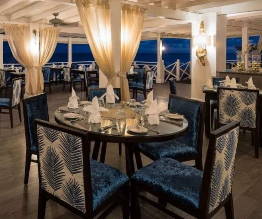 From then on drinks, meals and snacks are always at hand. Opening at 10 am, The Rum Shop, built in traditional chattel house style, serves up sandwiches and drinks alongside the rum cocktails. Throughout the day, waiters provide poolside drinks service, and the Cerulean Bar finally closes at 1 am.