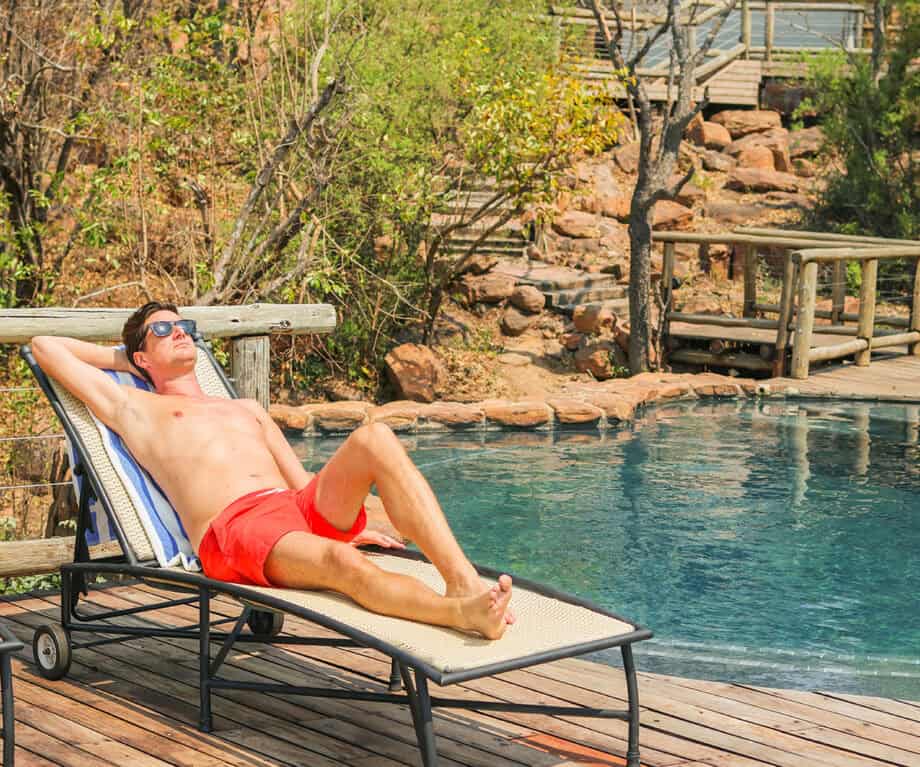Finally, the spa enhances the relaxation experience – a dedicated room overlooking the surrounding bush. Several treatments are available, including the use of the egg-shaped natural stone bath – reminiscent of the renowned tubs at Tshwene’s sister property, The Outpost in Kruger. These beautiful spaces prompted me to forgo two game drives, choosing to relax in the tranquillity of the bush: enjoying a leisurely bath, reading on the deck, and finishing with a cocktail at the pool.