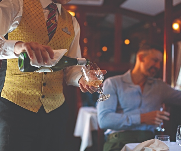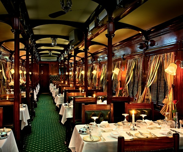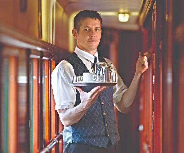 Guests are summoned to dine by a mini-xylophone, and dressing for dinner is expected – men are required to dress in a jacket and tie and ladies at cocktail or evening dresses. This ceremonial ‘dressing for dinner’ makes the whole experience feel special, and the food is certainly worth the effort. Four-course meals are served in the beautifully restored cherry-paneled, teakwood-pillared restaurant car, with cut-crystal wine glasses, fine china, starched linen napkins, silver cutlery and seamless service.