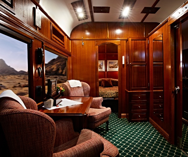 The spacious suites, some of the most spacious train suites in the world. Each can accommodate two people, and offer passengers the opportunity to travel in privacy, comfort and luxury. There are three styles guests can choose from (Royal, Deluxe, Pullman), each with varying levels of luxury.