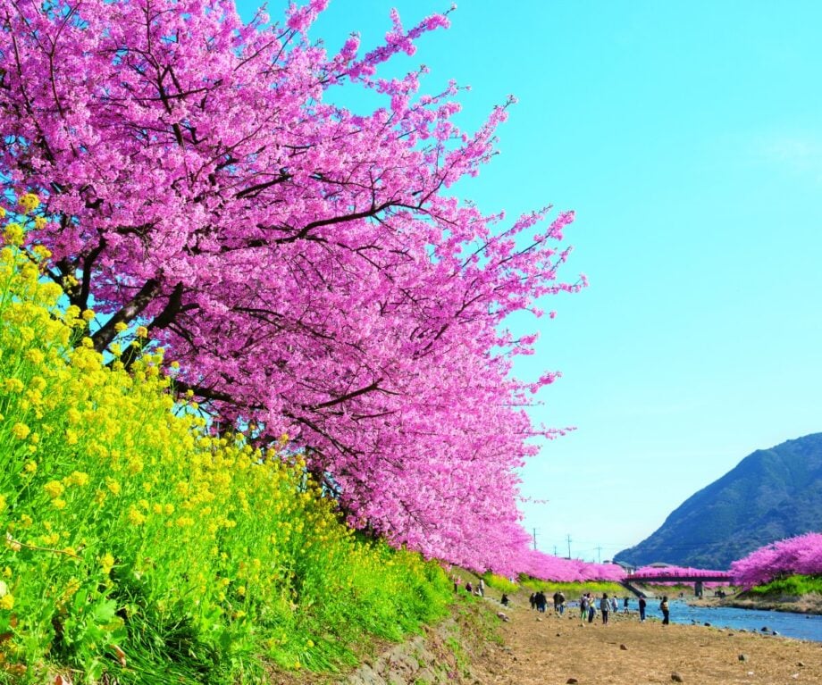 Shizuoka is home to some of the earliest blooming cherry blossoms in Japan, and the Itokawa Promenade Sakura Festival (early January to early February) and the Kawazu Cherry Blossoms Festival (February) offer a fantastic chance to see them. Visitors can expect vast displays of the famous flowers, with deeper pink petals flooding the streets, alongside stalls selling local speciality, Japanese street foods and crafts.
