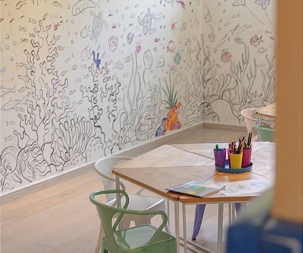 The kids club itself isn’t too shabby either with different rooms where the younger guests can play, read, dance or even take a nap as I noticed they have some of the cutest fourposter beds for the little ones to have some rest. One of the highlights was the massive walls on which they can colour. In our own house it would be one of my worst nightmares yet here you see the little ones having endless fun at creating their own interior design by giving colour to each side of the room.